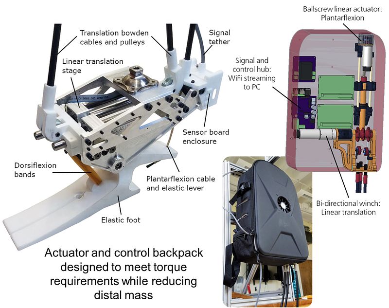 I designed and built a novel powered two degree-of-freedom transtibial prosthesis as a test platform for experimentally testing simulation findings of optimal gait with a generic prosthesis model. This design features a non-anthropomorphic anterior-posterior translation axis, allowing the foot to translate forward and backward during walking. This allows the device to control the AP center of pressure location relative to the residual limb, thereby controlling the ground reaction force moment arm against the socket-residuum interface. We found that in simulation, this design reduces peak socket loads while also reducing muscle effort required for walking gait.