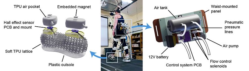This project is designed to allow overground experiments for studying human motor adaptation to changing ground stiffness, with eventual applications toward restoring weight bearing symmetry after stroke. To accomplish this, we are designing a wearable system to change the stiffness between the foot and the ground during walking or standing. We are using 3D printed soft lattice structures as shoe soles to obtain a very low stiffness interface, which we can then actively control with an embedded system. This project is under development.